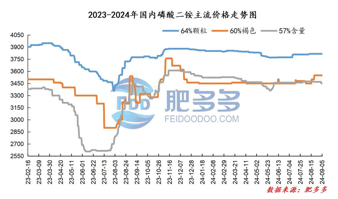 今日国内磷酸一铵市场价格持稳。企业方面,新单成交依旧乏力,企业产销压力继续增加,部分工厂虽仍在挺价,但陆续新政策已出,有减产计划,新单成交保持商谈。市场方面,市场走势依旧偏弱,交投气氛欠佳,新单跟进不足,低端价位不断出现,行情延续弱势整理,业者情绪面继续受压。需求方面,需求面依旧疲弱运行,下游秋季肥走货一般,对原料的补单积极性不高,新单跟进不足,下游仅维持刚需采购为主,新单交投气氛欠佳。原料方面,原料硫磺、磷矿石市场价格维持震荡,合成氨市场变动不大,弱势整理,原料价格走势下滑。综合来看,当前一铵业者情绪继续受压,市场价格显乱,与工厂价格继续倒挂,秋季肥走货缓慢,成品下降速度较慢,预计短时间内磷酸一铵市场价格延续弱势运行。