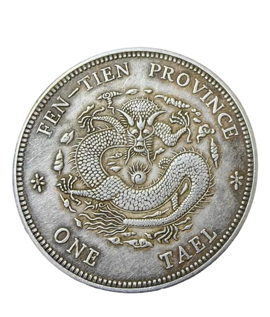 2. 工艺与文化价值:正面满汉双语铭文、中心“光绪元宝”,背面蟠龙纹栩栩如生,英文“FEN-TIEN PROVINCE ONE TAEL”规范,是清末币制改革的实物见证,兼具极高的历史研究价值与艺术审美价值。