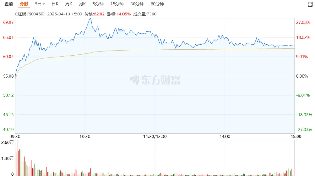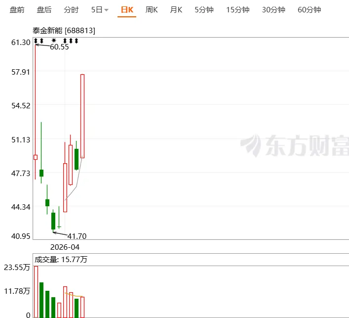 最好名字的红板科技低开翻红,跟着泰金新能的步伐震荡上行,早盘攻击到接近70元高位,完美创出历史新高,完美解放全世界。