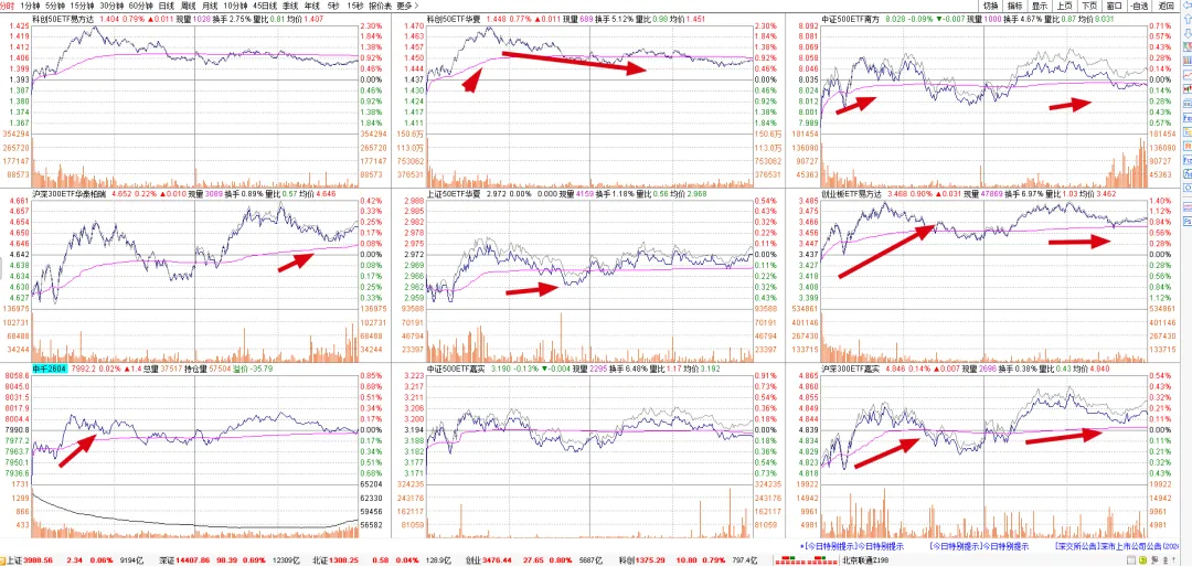 早上原油暴涨,股指低开,但也仅仅是低开,科创板的成分股寒武纪上涨较多,带动股市情绪还可以,最后一番震荡后,标的都是小阴小阳的状态。