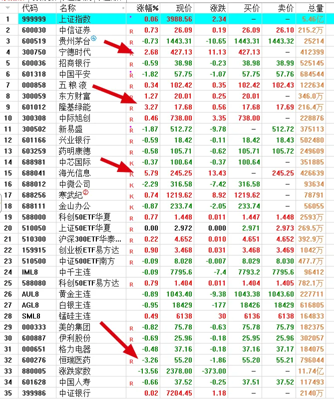 主要成分股涨跌不一,部分股票涨幅还是可以的。