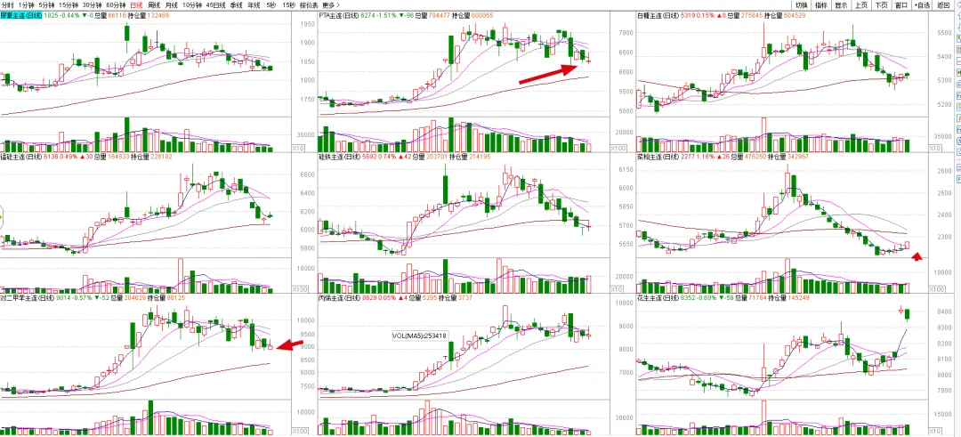 有的品种单边下跌的很明显。