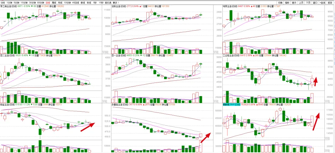 广汽所几个品种今天蠢蠢欲动,比如多晶硅在消息刺激下涨停。