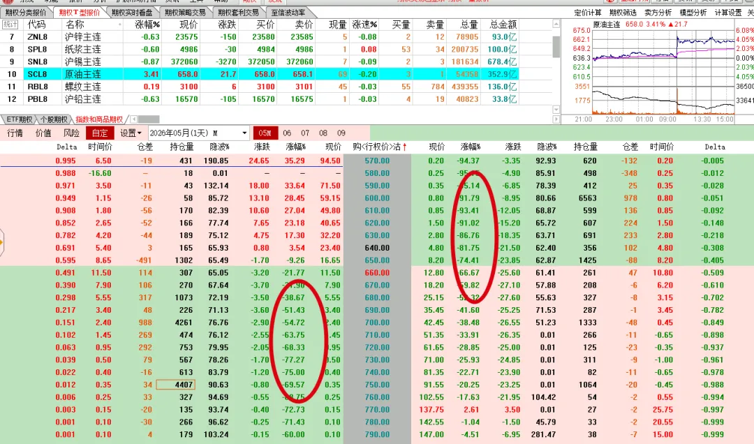 原油最近算是消停了,虚职期权双双下跌,明天到期。