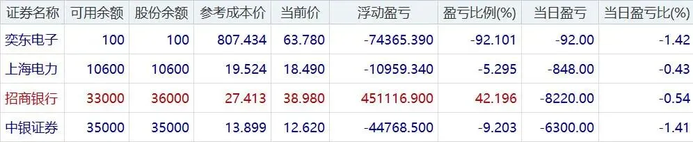 今日盘后持仓: