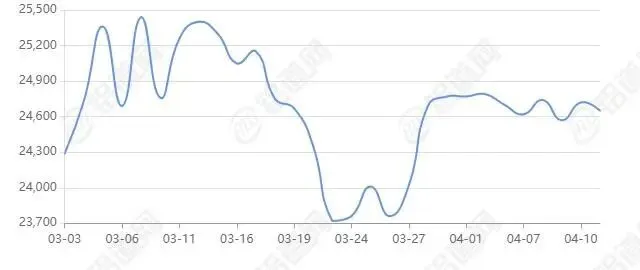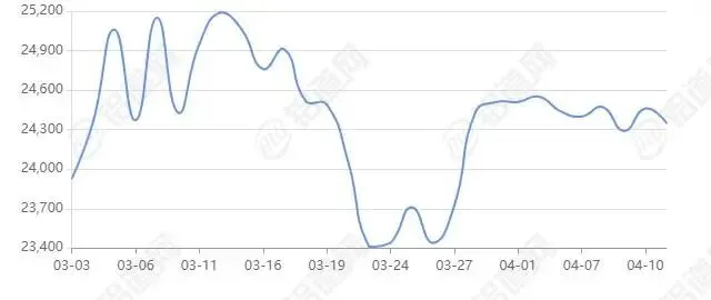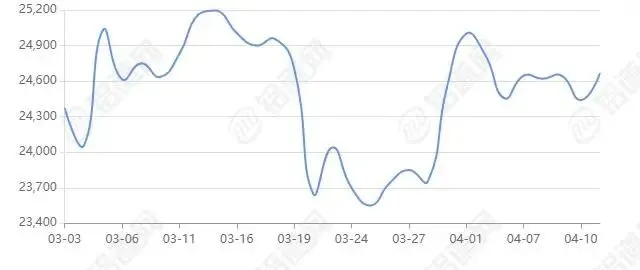 2026年04月13日上海期货行情价24665涨跌+95,最低24560,最高24700,前三日均价24568,前五日均价24561。