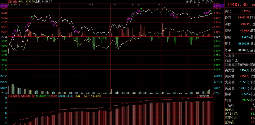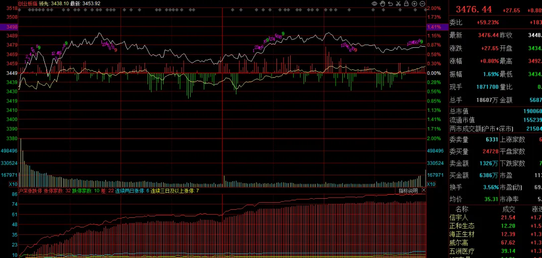 全场2300多家个股上涨,有几十家近百家个股涨停。这比外盘已经强了很多。要知道今天亚洲股市基本都是下跌的。