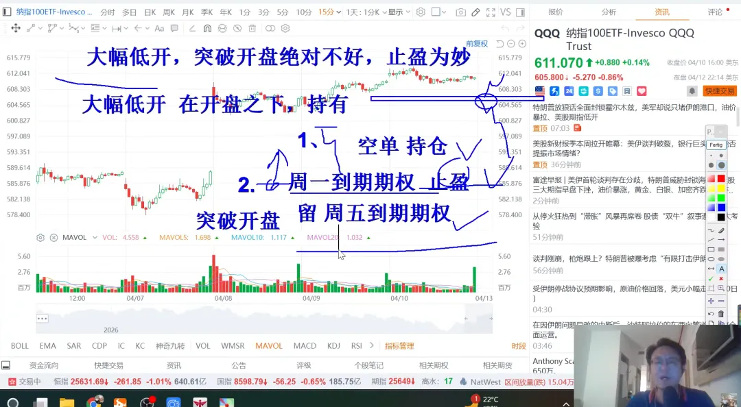 | 趋势向上但行情震荡,持仓不动,除非快速暴涨或跌破开仓价。中间位置不建议操作。 |