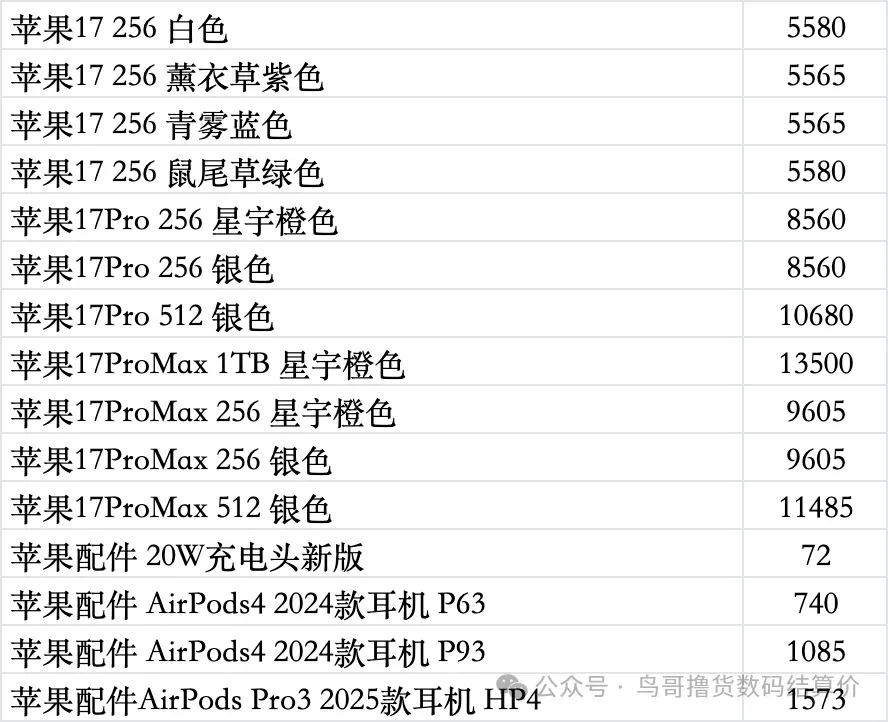| 鸟哥收货iphone/ipad/手表系列结算价(前一天的结算价) |