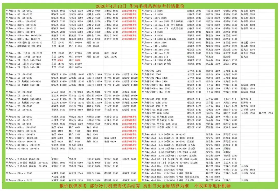 | 鸟哥收货华为/oppo/vivo系列结算价(前一天的结算价) |