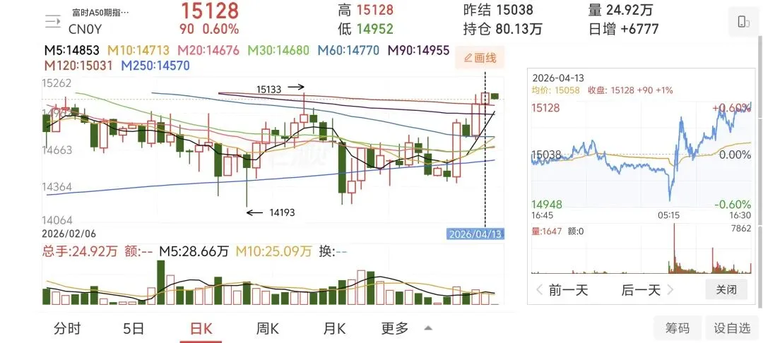 在今天A股收盘之后,富时A50股指期货直线拉升,直接站上了上方均线,所以接下来大盘大概率也要站上上方均线!