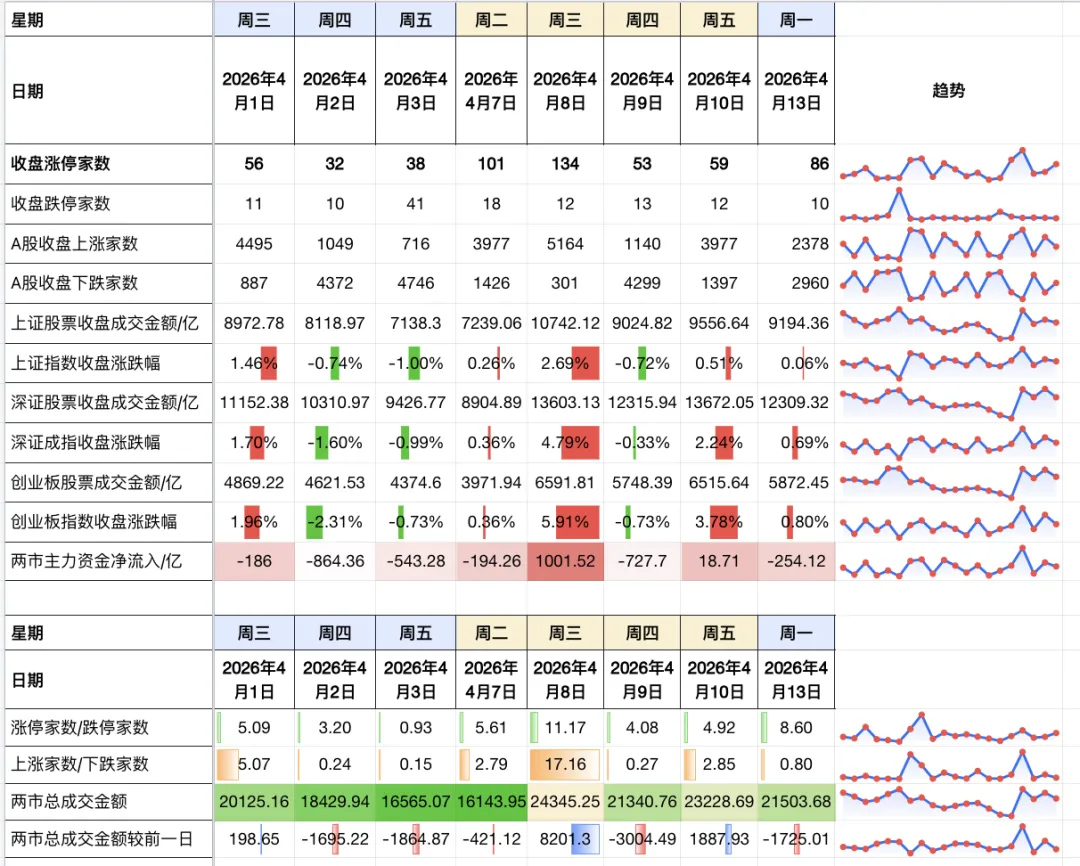 【上午】:在美伊冲突未缓减的影响下,盘前三大指数均出现下跌,市场上涨家数990多家,全天市场量能预测缩量2455亿,板块方面,油气开采相关领涨。开盘10分钟,油气板块高开快速低走,市场上涨家数1300多家,全天市场量能预测缩量1800亿,三大指数均出现低开高走,上周五大涨的电池、光伏继续上涨,PCB、封测等逆势上涨,通信设备、电网设备主力资金流出靠前。