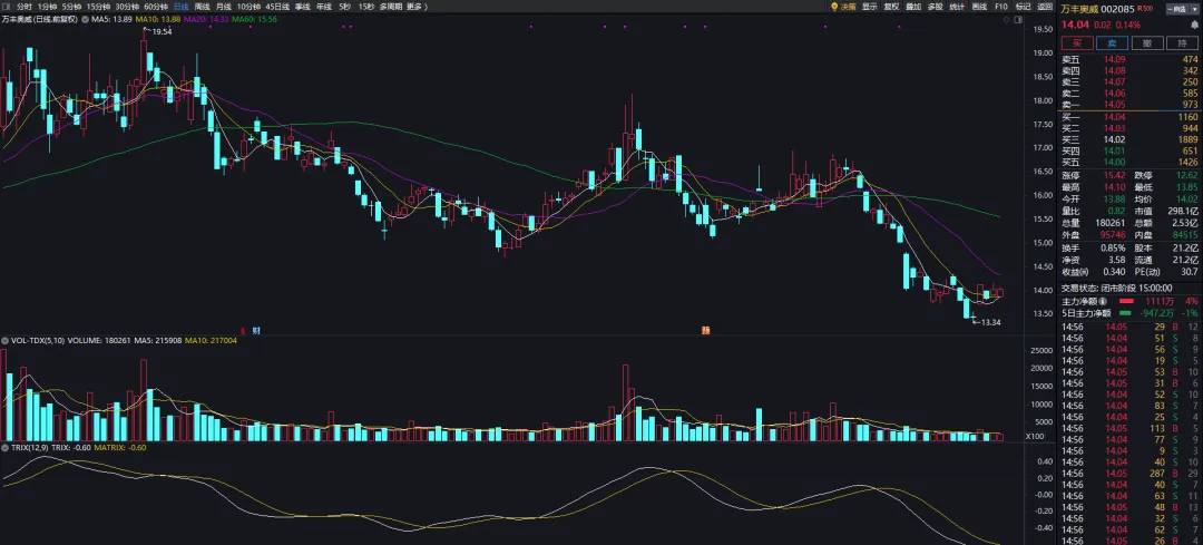 长线票:众合科技收涨,20日均线站稳以后分批加仓。片仔癀耐心布局。苏能股份安心持有,4.5附近可以补一点,后续高抛降低成本。 中线票:万丰奥威震荡,耐心持有,月底之前看好重新站上16元。 张家界收涨,耐心持有,潜力非常大。莲花控股缩量震荡,持有不动。人民网震荡,持有。省广集团无操作。市场最坏的节点已经过去,不要被波动洗下车,让子弹飞一会儿,静等下一段上涨行情。