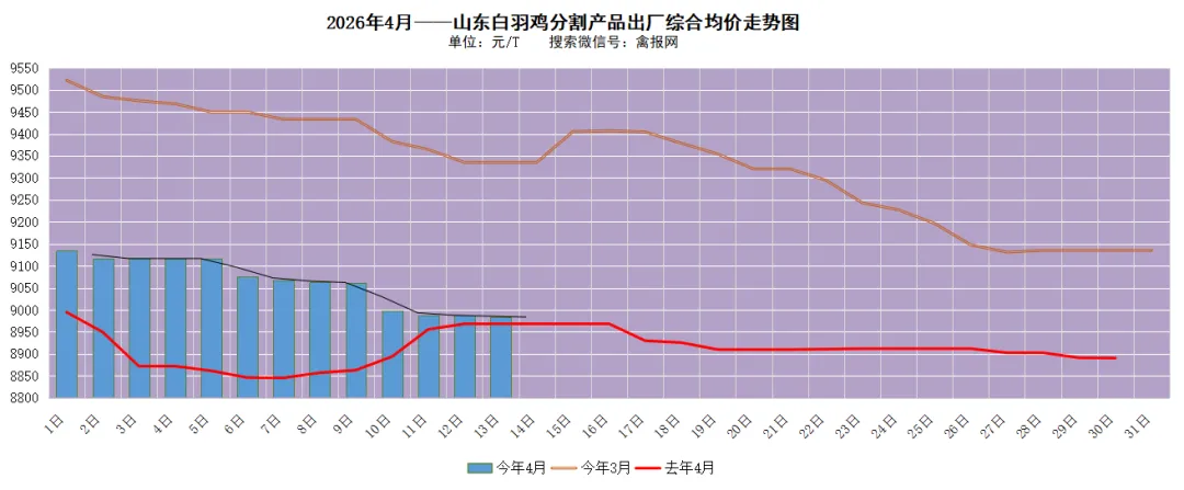 附注:据禽报网监测数据,2025年4月的月均吨综合售价日均值为8913元/T,2026年3月吨综合售价日均值9331元/T。