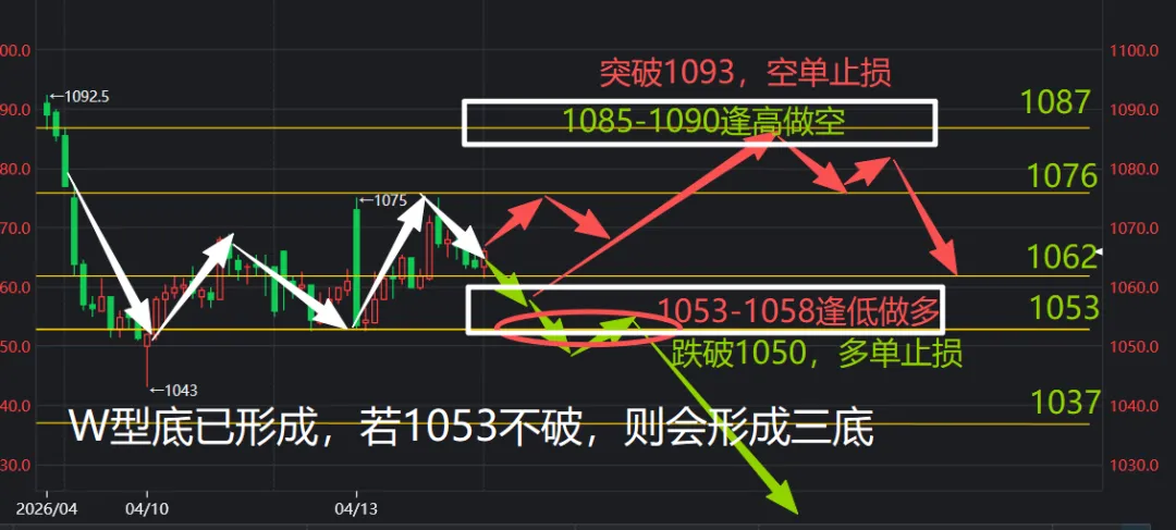 但是盘感不好,不建议追高,毕竟属于逆势操作,可以选择在1087附近逢高做空。