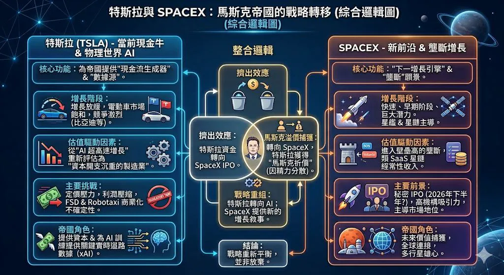 • 资本腾挪: 历史上,马斯克多次减持特斯拉以支持 X 或 SpaceX,这种操作虽然短期利空股价,但其核心逻辑是为了确保整个生态系统的生存。