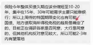 消息面来看,在周五有小作文传未来将加大对15年特别国债比例,缩减30y期限,感觉可信度并不是很高,市场选择了先相信,收益率大幅下行,走利空出尽的行情。今天下午也有个小作文,在去年8月8号开始对新发行的国债、地方债、金融债的利息收入恢复征收了增值税,但对政府债券利息收入的企业所得税是仍然免征收的,对于保险公司而言如果征收所得税对保险而言会带来比较大的投资冲击,按照征收25%所得税来看,综合税率会达30%。从短期内来看,如果是按照增值税那套历史经验来看,短期内已持有的存量国债和地方债会因为免税的影响需求大增,收益率迅速下行。从长期来看,若真征税对于保险机构而言,配置方向可能会迎来转变,一是可以加大对高股息股票的配置;二是增配超长期限信用债。这些都要看临近落地过渡期怎么安排,存量债券是否能继续享受免税待遇。