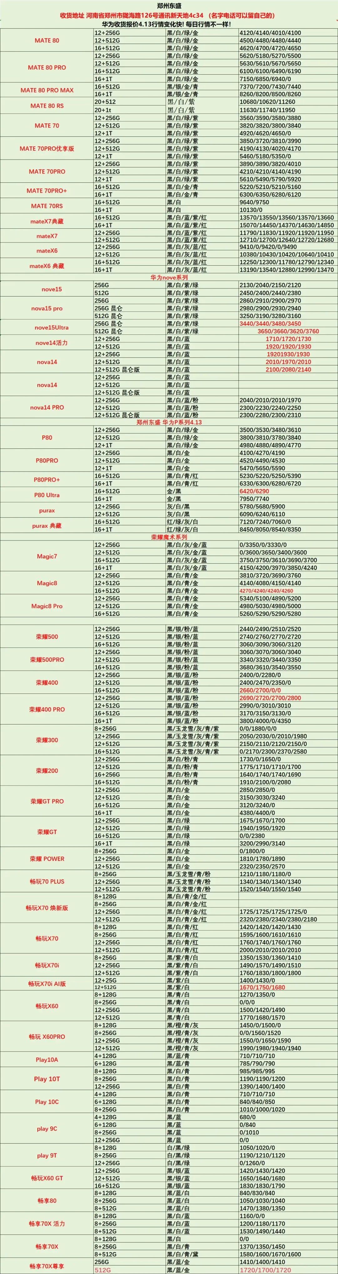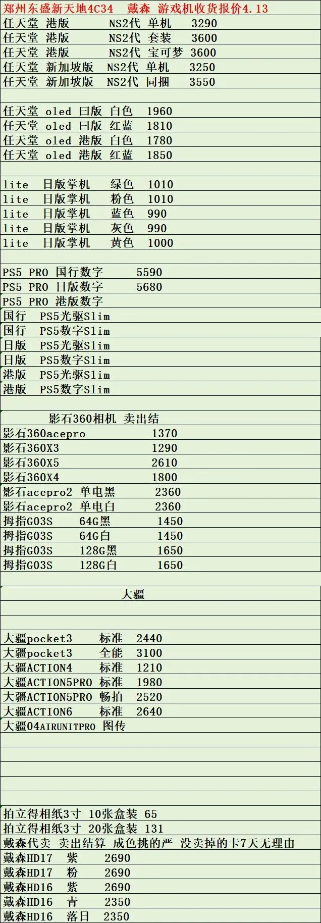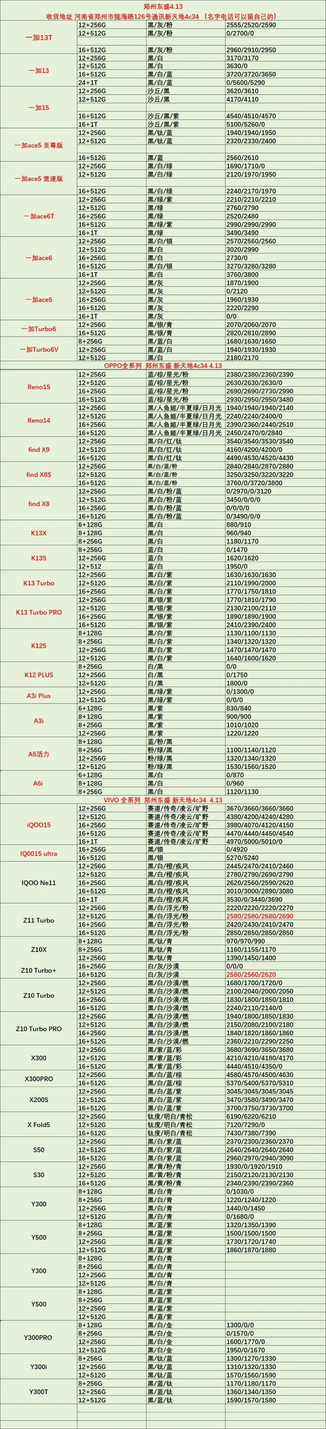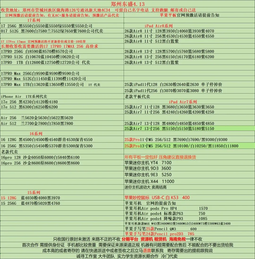 >郑州通讯新天地东盛4.13手机数码行情
