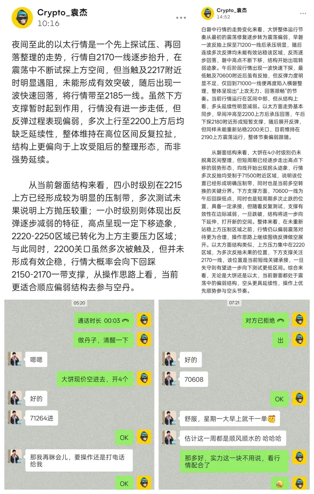 从当前磐面结构来看,日线级别仍处于高位震荡中的偏弱整理阶段,上方连续冲高未能形成有效突破,反而多次留下上影,说明抛压持续存在,趋势上暂未形成新的上行延续;4小时级别结构更加清晰,大饼在72000-73000区域形成阶段性压制带,几次上探均未站稳,属于典型的反弹受阻结构;而下方支撑则相对集中在70000—70500区域,这是前期多次回踩确认的位置,一旦失守,结构将进一步向下延伸。以太同样处于类似节奏,上方2250一带形成压制区,下方支撑则在2150—2170区域。整体来看,当前仍运行在区间内部,但上沿压制更为明显,结构倾向于反弹后的再度回落,操作思路上依旧保持日内的高空思路,目标看向区间下沿支撑带,顺势参与更符合当前磐面节奏。