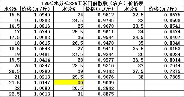 2.门前“带票”价格:新粮14%<水分≤15%三等及以上玉米折标价格为2270元/吨;15%<水分≤38%玉米折标价格为2240元/吨;该价格为筛混不返杂价格;需提供发票(9%税率);发票入账后10个工作日内付款。