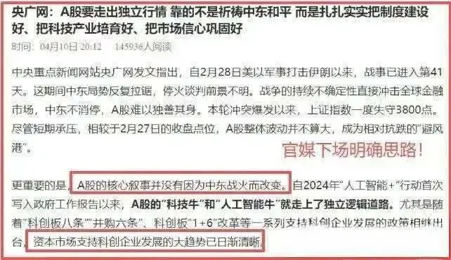 昨天在海峡再次关闭+油价暴涨背景下,A股低开高走,在全球主要股市中相对强势,说明行情对中东局势的影响逐渐脱敏,这里也给大家看看官媒定调,打铁还需自身硬啊。