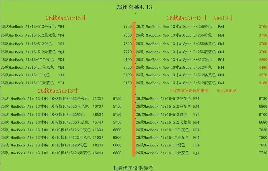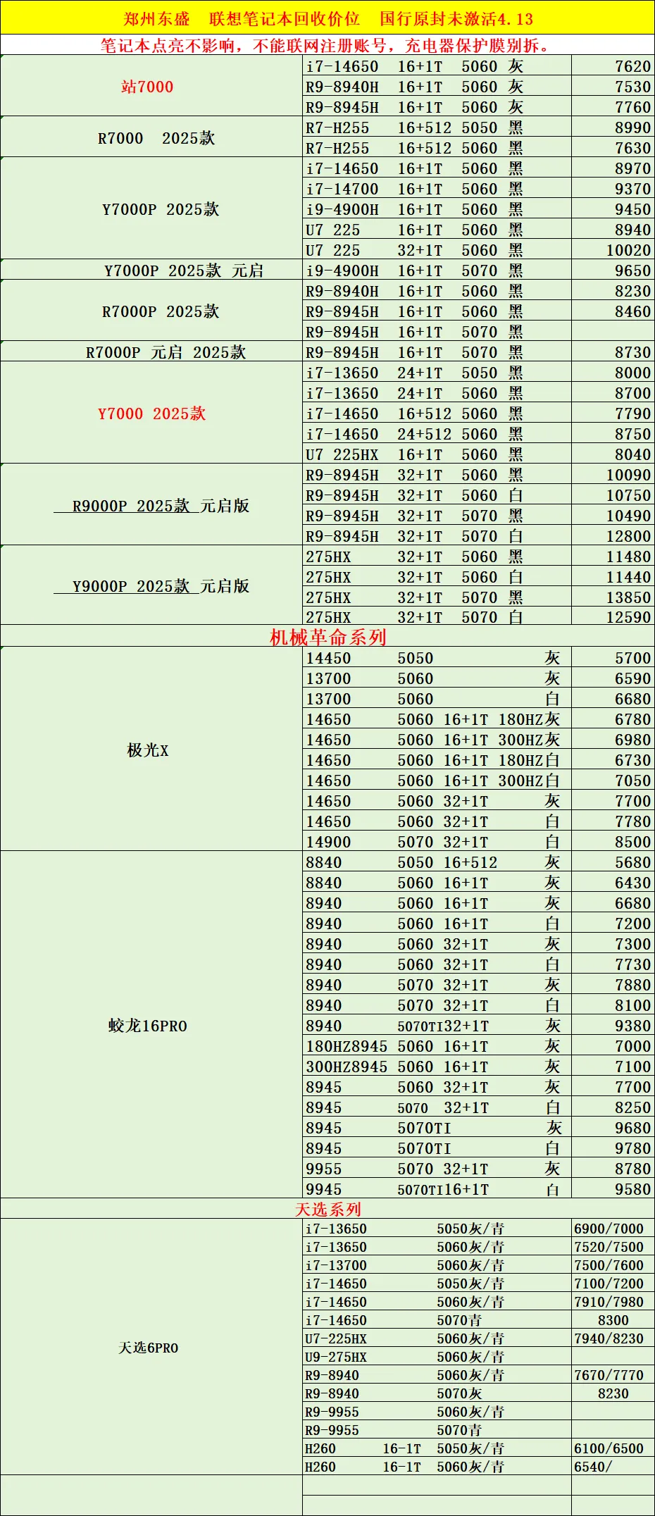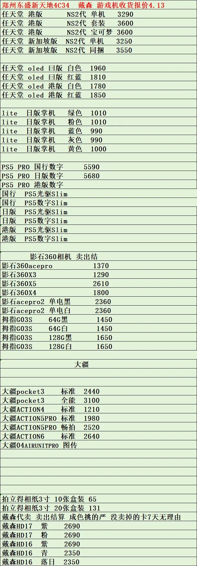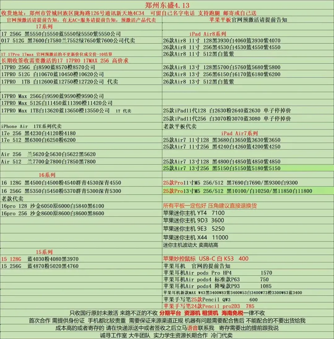 郑州东盛通讯新天地4.13号行情