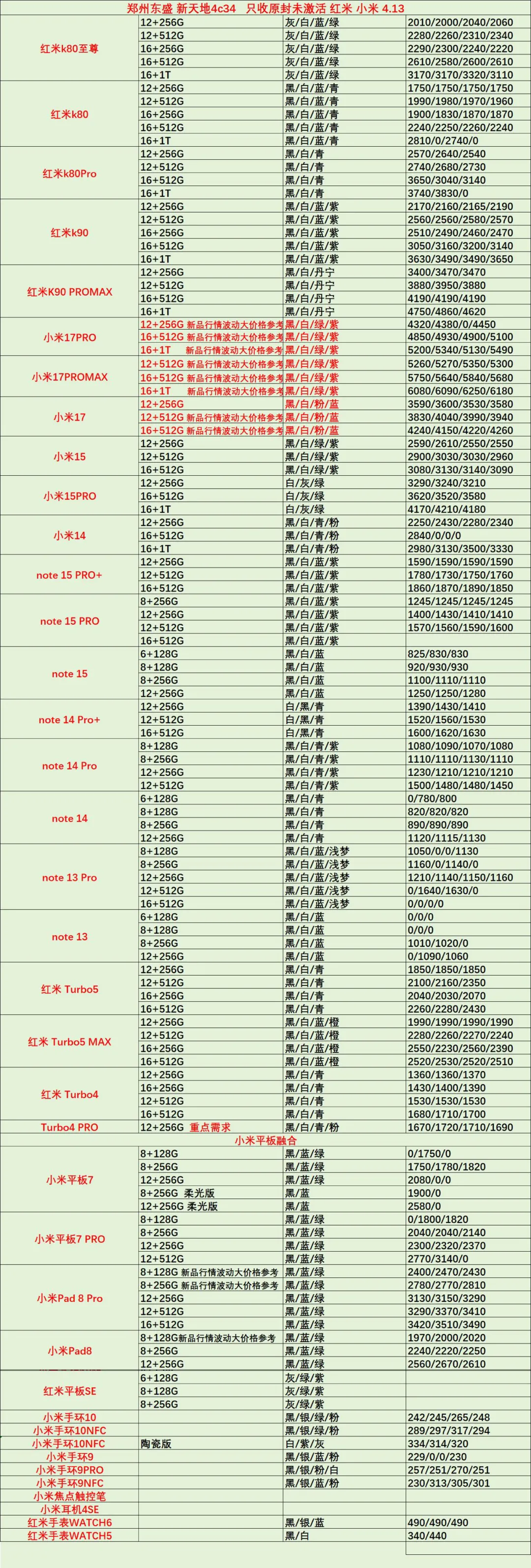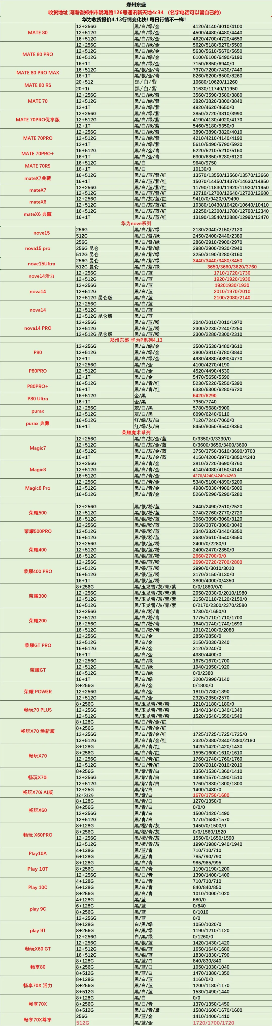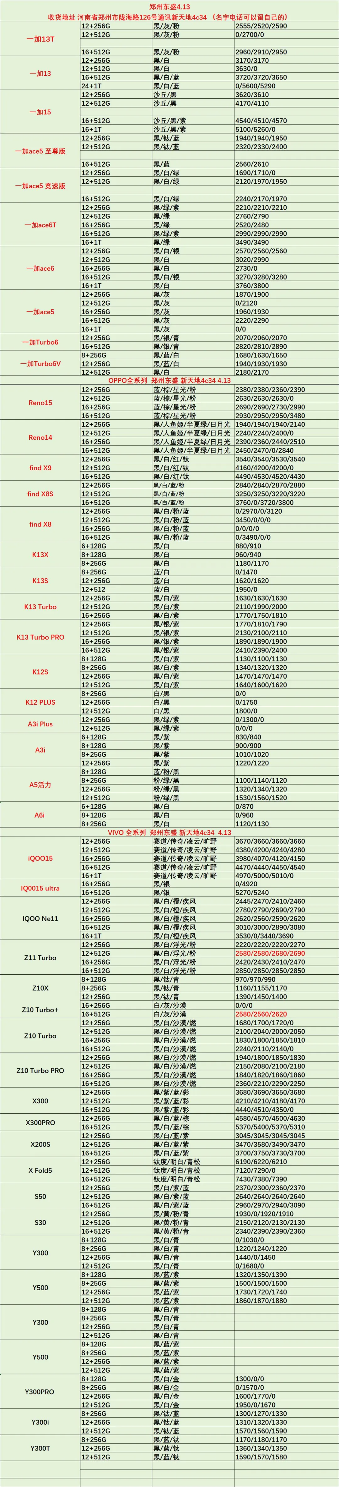 >郑州东盛通讯新天地4.13号行情