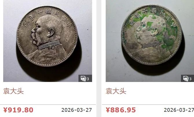 | 袁大头(三年 普通) | 1120–1260 | | 甘肃版 +15%;三角圆 +20%;O 版 +180% |