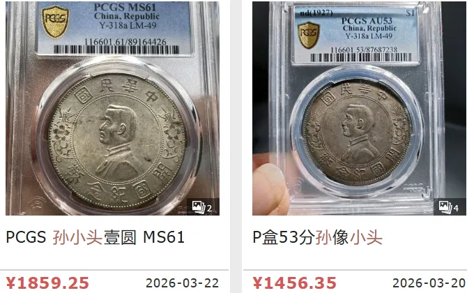 评级币(PCGS / NGC / GBCA):XF45 较通货+40%–70%,MS 级更高
