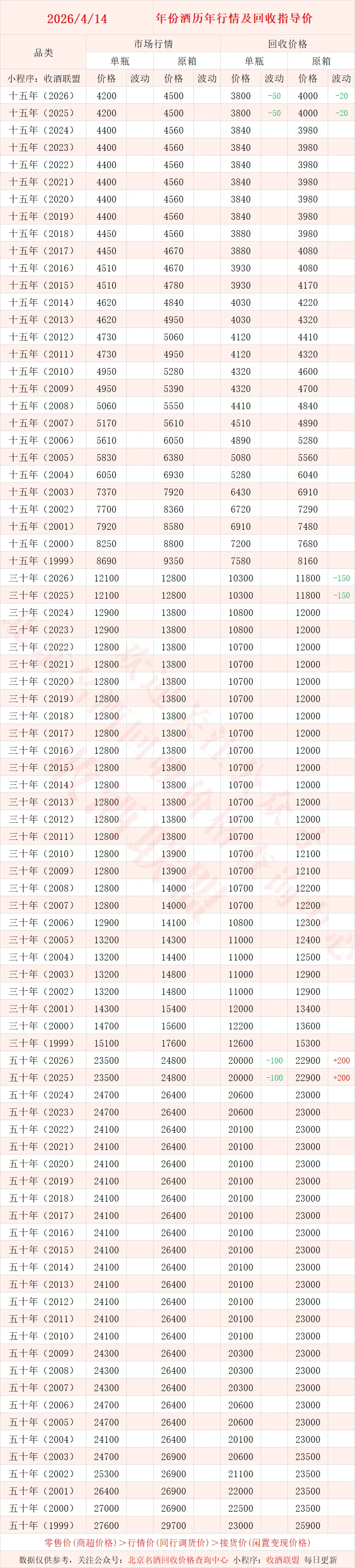 北京名酒回收价格查询中心,联系电话15652897909【同微】,专注于名酒回收行业的综合服务平台!是北京市价格认证中心、天津市价格认证中心的特聘专家,从业多年积累了各种名酒真伪鉴别经验,拥有多名品酒师、鉴定专家!累计服务数十家各省市价格认证评估,旗下小程序 “收酒联盟”,提供一键查酒价,不仅能一键查询各种名酒的价格,而且每日都会及时更新,保证你看到的都是新的准确行情。直接面向大众提供老酒,红酒,洋酒等真伪鉴定回收变现服务,回收价格专业靠谱!经过十余年磨砺,在全国100余座城市、四千多家业务会员酌情提供上门回收,是名酒回收行业中的翘楚!