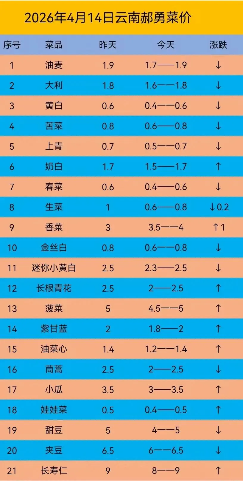 一、油麦菜:今天价格持平。
