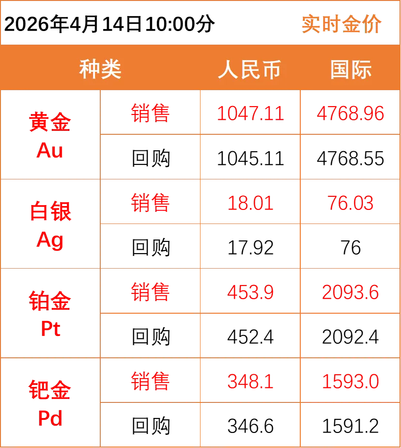 【今日金价行情】2026年4月14日 10点02分 星期二