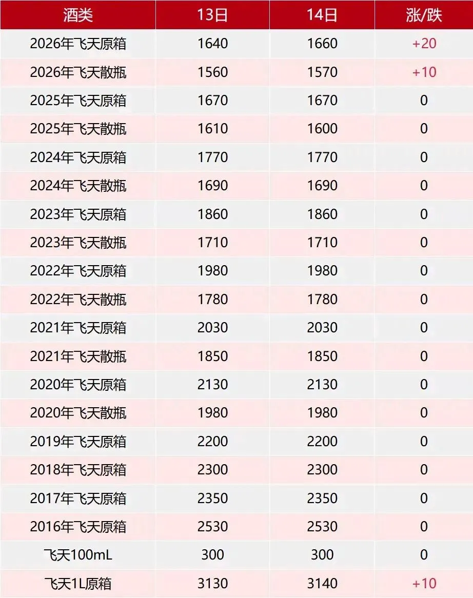 >飞天上涨.4月14日茅台行情价.