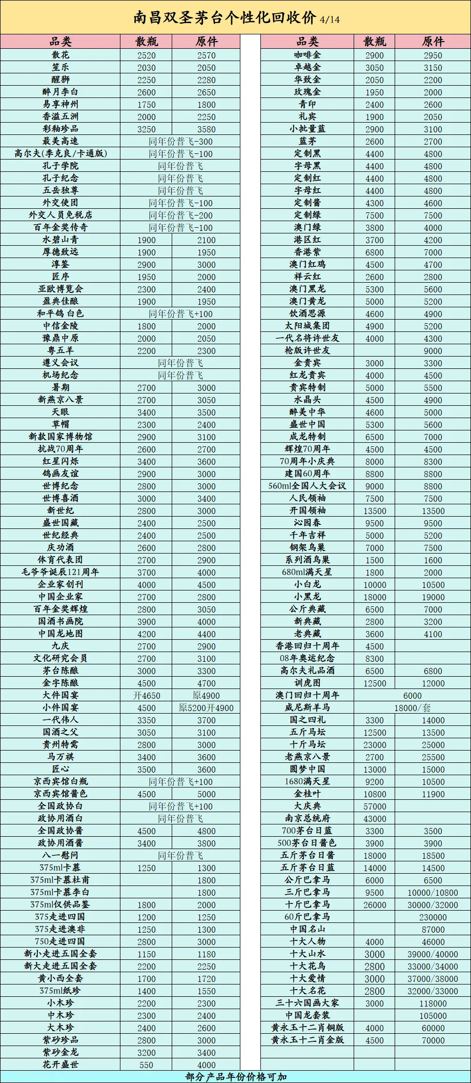 飞天上涨!4月14日名酒行情