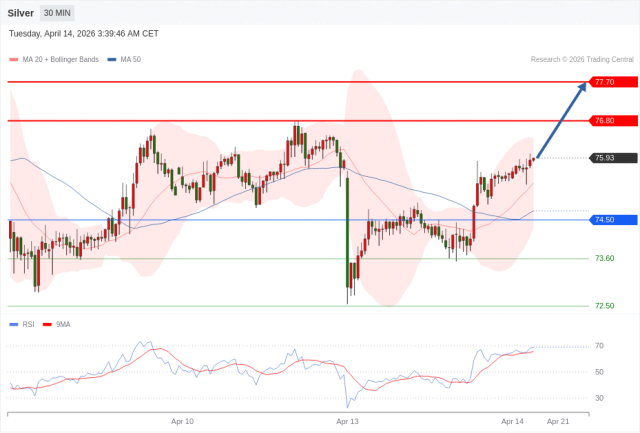 No.1 | 在 74.50 之上,看涨,目标价位为 76.80 ,然后为 77.70 。 |