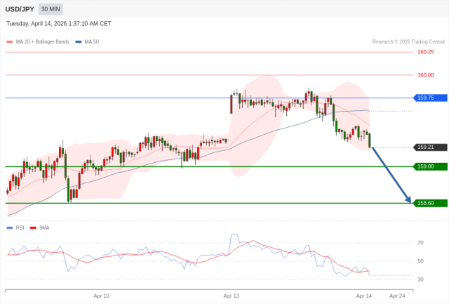No.1 | 在 159.75 之下,看跌,目标价位为 159.00 ,然后为 158.60 。 |