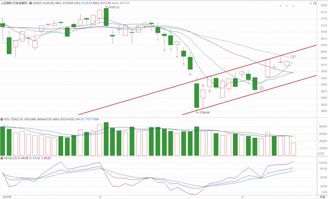 通过增设创业板第四套上市标准、落地再融资储架发行及松绑并购重组限制,将引导资金流向核心高科技和优质成长股,提升了市场风险偏好,激活并购重组,稳定了市场预期,增强了市场信心,市场走出改革红利行情。沪指目前处于日线级别的反弹中,上午反复冲击上篇文章给出的上档阻力位4011,下午观察能否向上突破。如图所示的沪指日线上升通道上轨在4025,是站上4011后的下一个阻力位。沪指20周均线在4012,本周如能站上就是多头的胜利,那么下周5周均线将勾头上行,有望扭转周线跌势。中东冲突不会阻止Al的发展,Al浪潮方兴未艾,Al产业链近期强势上行,以算力硬件为代表,如CPO、PCB、光器件等。接下来,我们也可以期待自主可控方向的半导体芯片、光刻机和六大新兴支柱产业的机会。Al应用也会不断表现。昨天33只ST股涨停,今上午14只涨停,意味着市场风险偏好的回升。近期人民币升值又创新高了,外资仍然看好A股,中国经济转型升级与地缘政治稳定将不断吸引外资流入,他们更偏好核心科技龙头。创业板改革欲将创业板打造成中国版的纳斯达克,对于吸引外资可谓正逢其时、正对胃口。