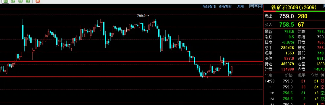 目前有色镍继续箱体震荡偏多行情,等下方支撑回调到136000附近支撑到回调137500附近企稳也可以继续尝试反弹,目前建议继续回调低多为主,上方压力140000反弹遇阻可以试试回调突破则继续看多为主,整体暂时看震荡看待,2609铁矿小时线;目前震荡偏多看待。