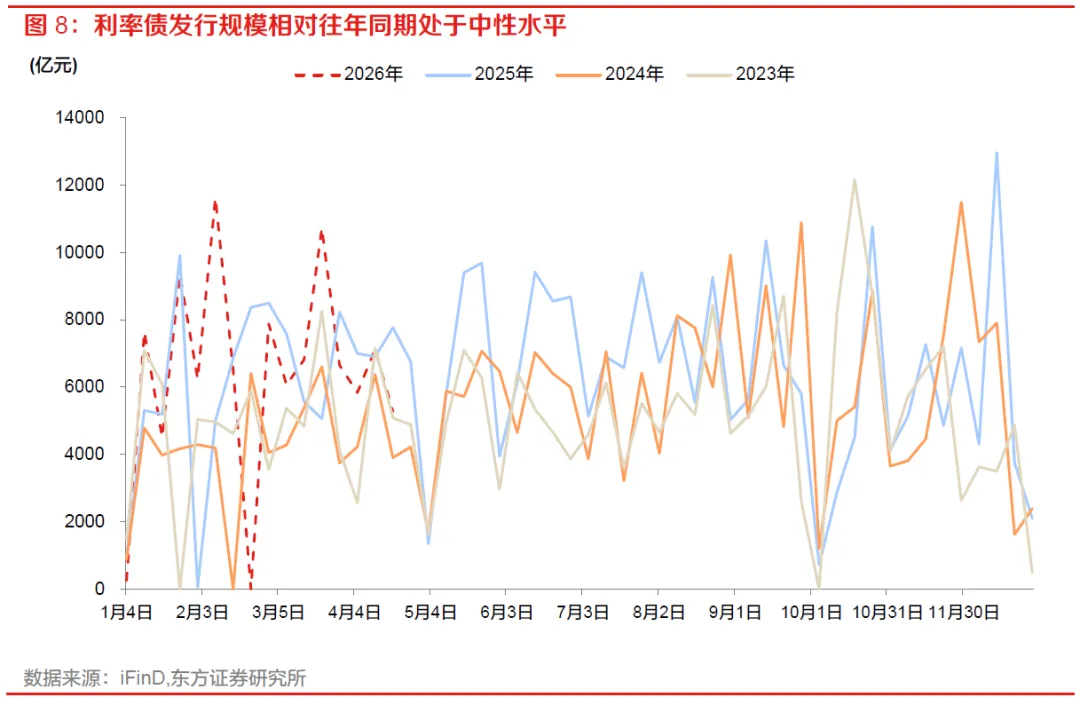 供给节奏超预期:本文假设2026年政府债供给节奏与去年类似,则供给因素对资金面、地方债一二级价格影响偏弱,若出现节奏超预期加快,可能对地方债一二级价格带来扰动。
