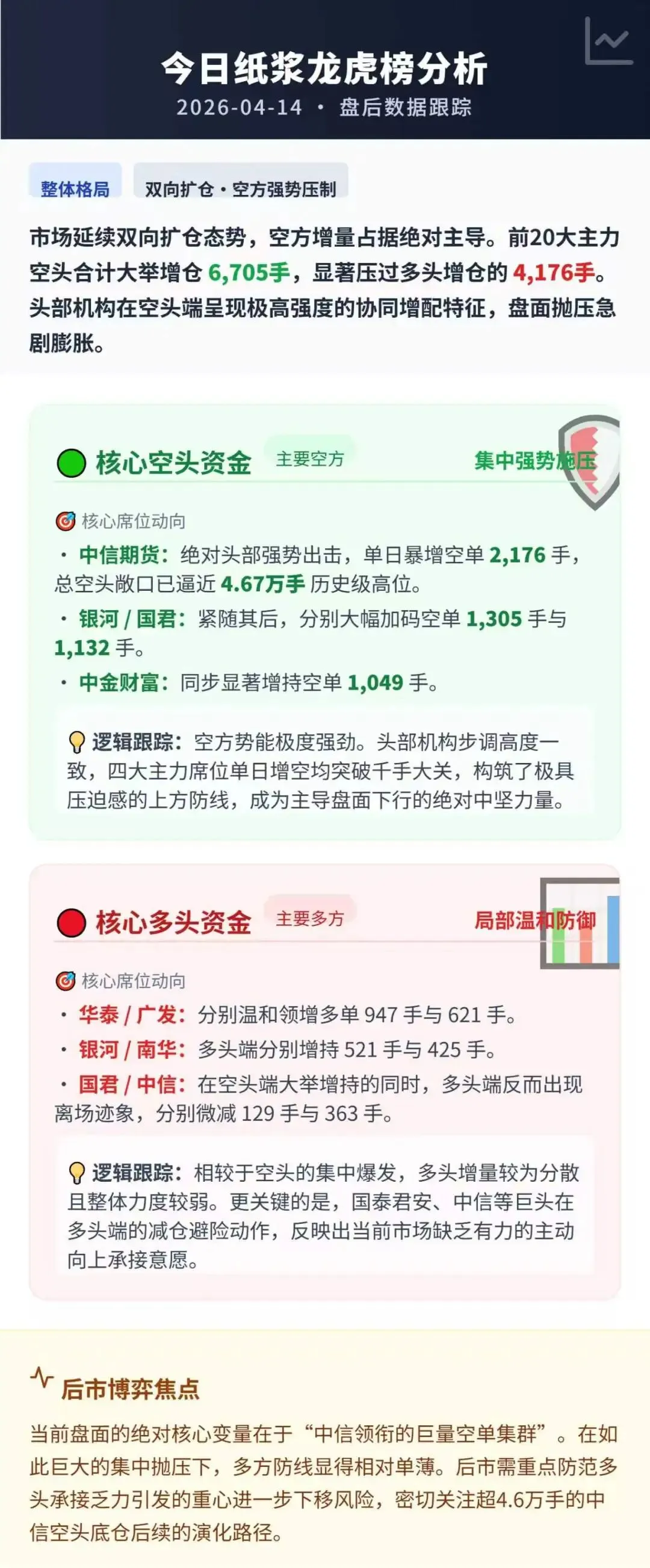 市场摘要:今日纸浆SP05合约区间震荡,针叶青岛银星现货报价05+30附近,常熟银星基差05+110附近,刚需点价成交。阔叶浆报价4580附近,较为坚挺,实单商谈成交。期货端市场延续双向扩仓态势,空方增量占据绝对主导。