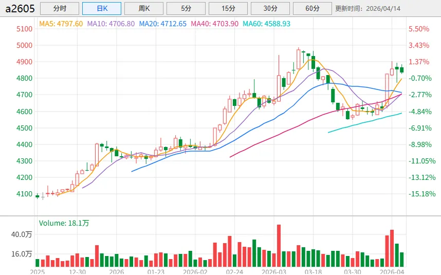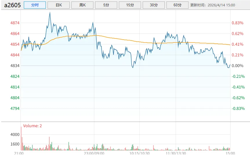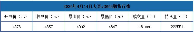当前位置:首页>行情>2026年4月14日 期货行情【大豆】