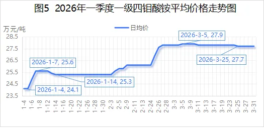 2026年一季度,国内一级四钼酸铵均价26.47万元/吨,较2025年四季度24.32万元/吨,环比增长8.84%;较2025年一季度21.74万元/吨,同比增长21.76%。