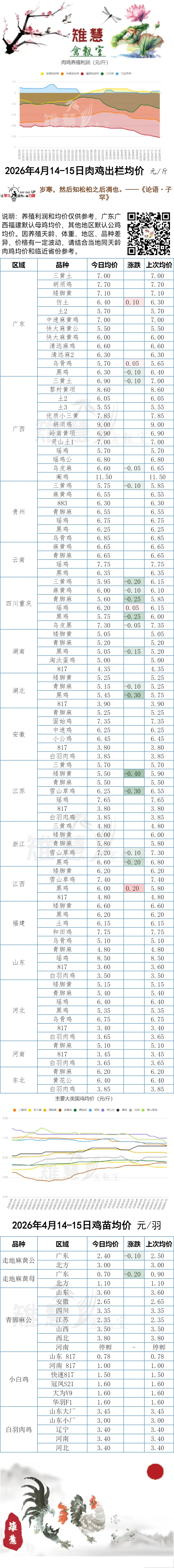 行情继续回落——2026年4月14-15日各地鸡价/苗价