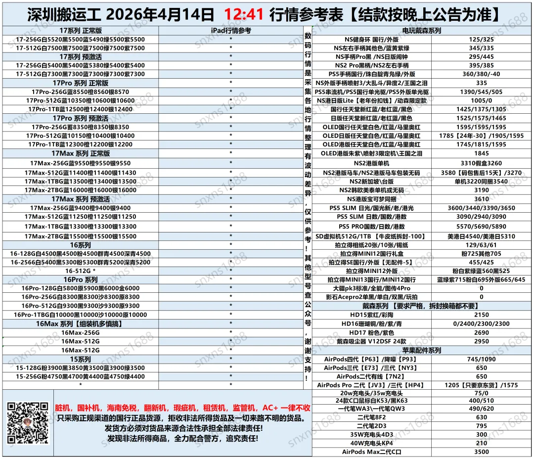 市场行情时刻波动,不一定全部更新到位,报价仅供出货参考。每晚会群公告公布实际结算价。我们是代卖模式,非定价接货,非咸鱼/顺丰上门打款。请知悉!感谢各位老板的信任与支持!