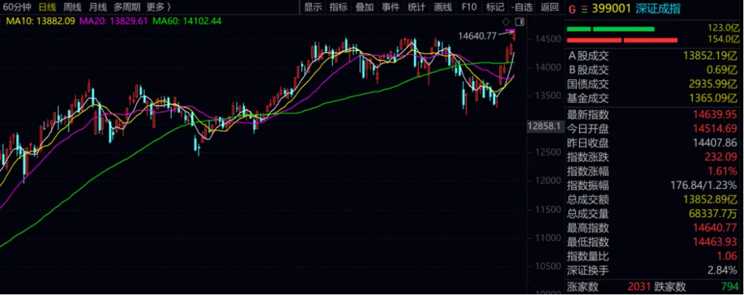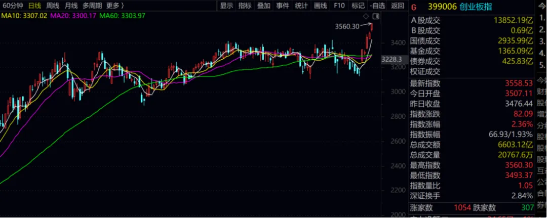 意料之外的是,一般猜不到行情在什么时候会启动,也没有料到会在人人自保的局势当中,深证指数特别是创业板指已经悄悄的走出了新高;