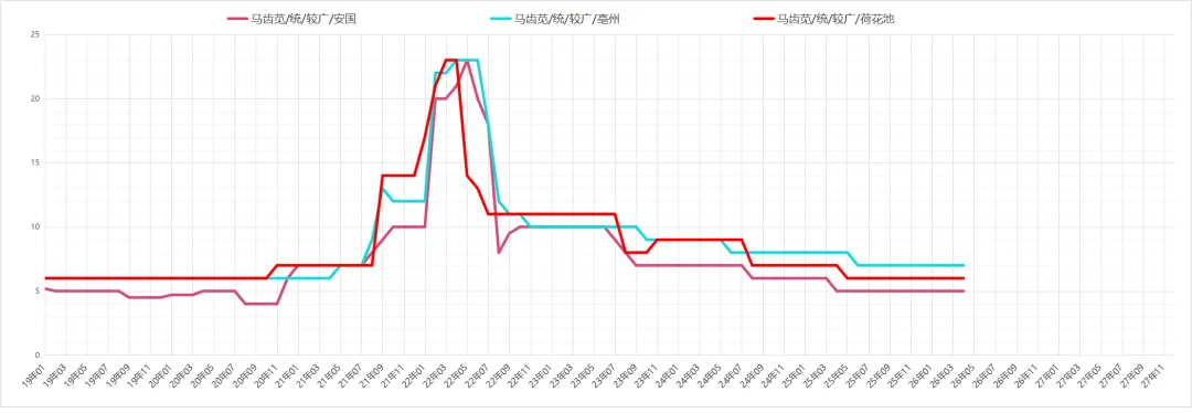 马齿苋价格无明显波动,当前市场寻货商家多以按需购进为主,供需趋于平稳,货源走销多以小批量走动为主,价格无明显波动,现江苏统货价格在5.5元左右,水煮货价格在6.5元上下。