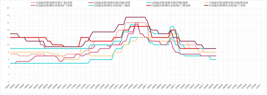 白花蛇舌草行情保持平稳,最近均为正常购销,行情保持平稳,目前亳州市场选货个子多要价在6-7元,饮片货报价在8-9元。
