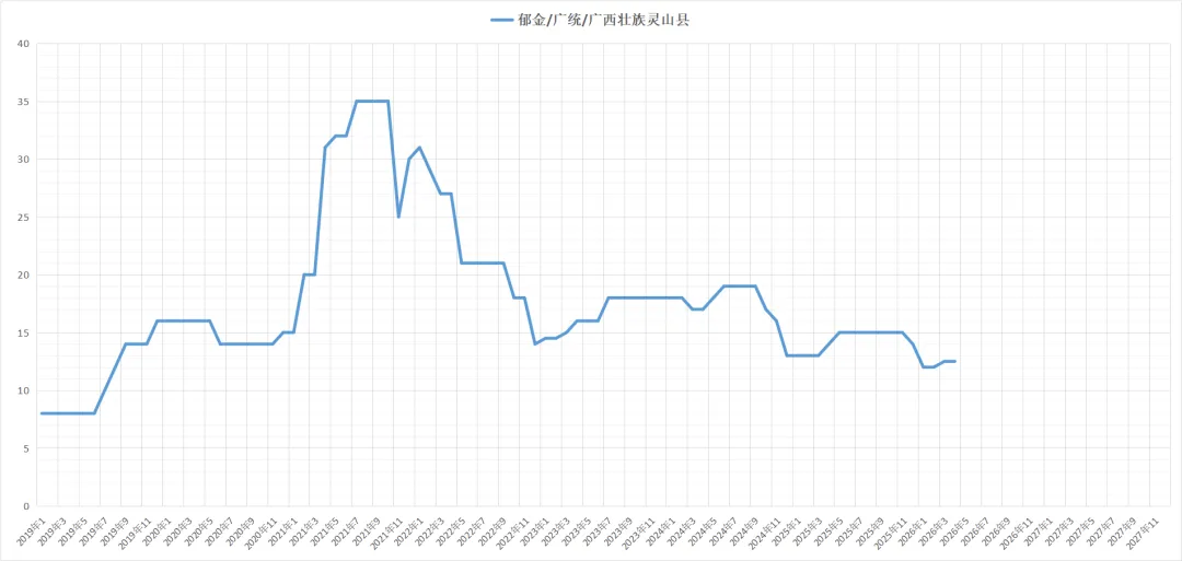 郁金行情平稳,近段时间正值种植期,因价低减种明显,商家持续关注,近期货源走动正常,行情平稳,现个子价格在13-13.5元之间,统片15-16元。