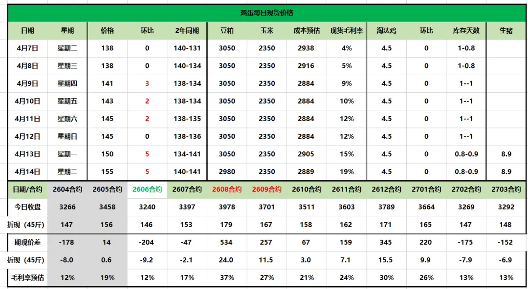 >鸡蛋期现货每日行情更新2026.4.14