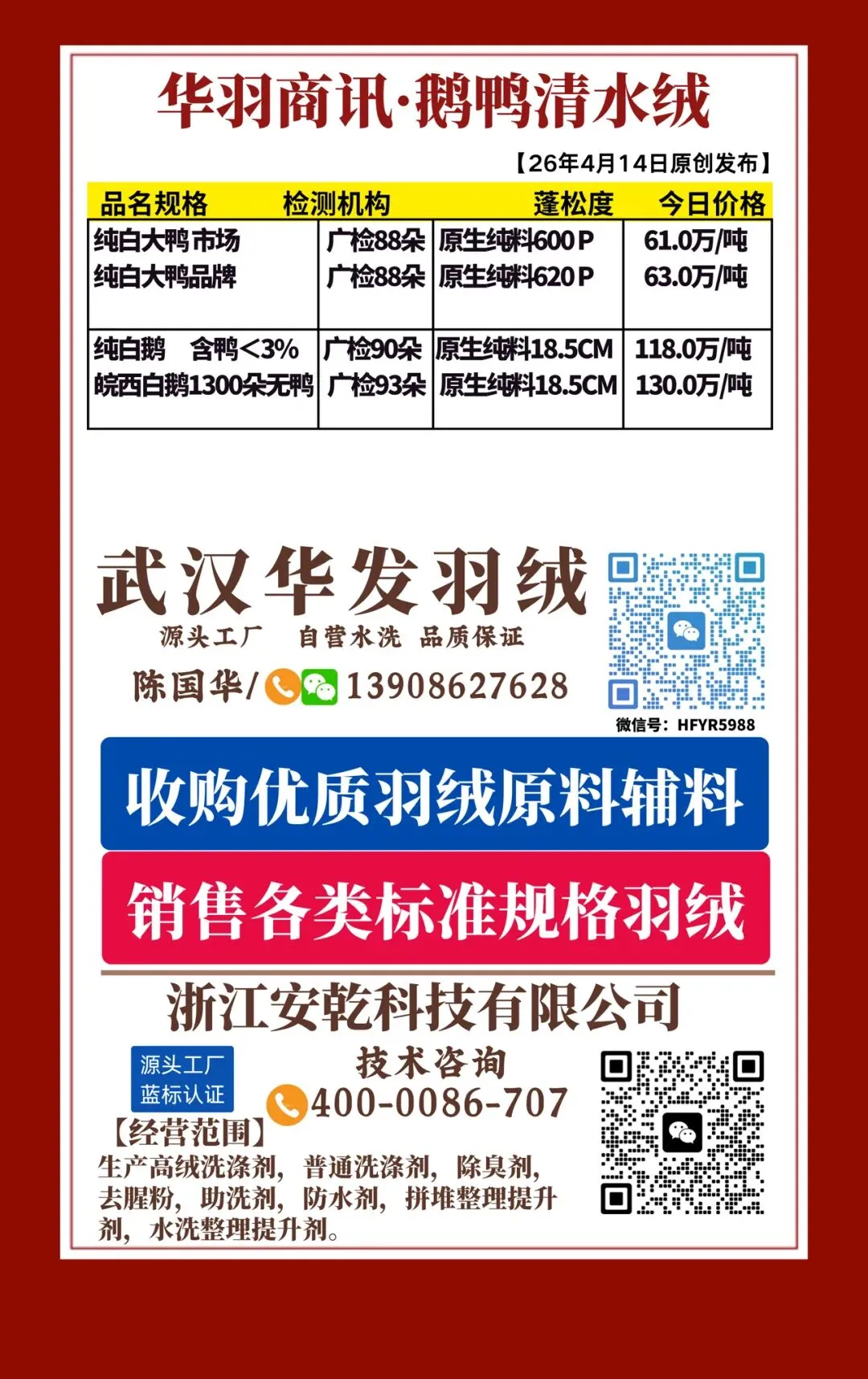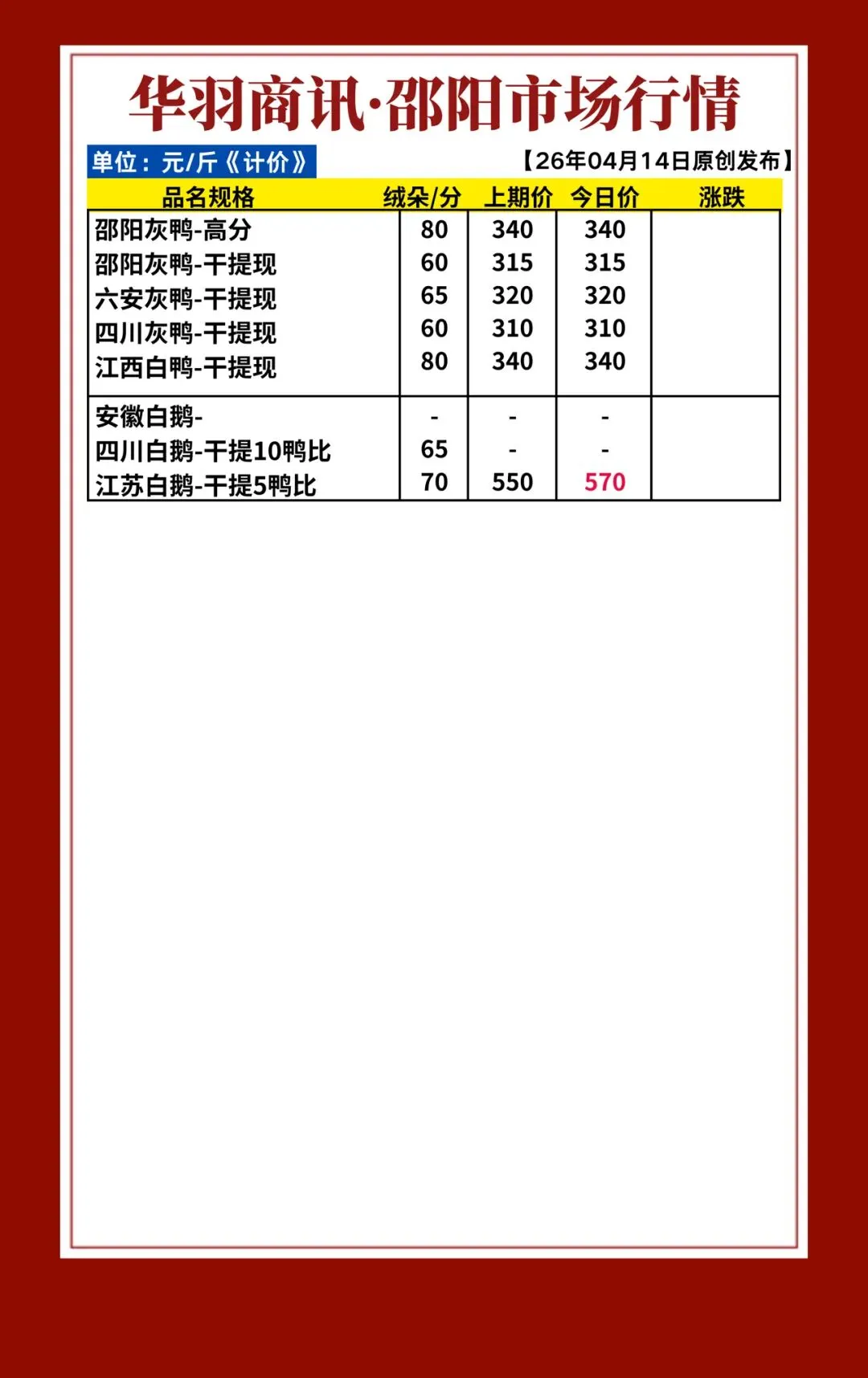 >378期 | 华羽商讯·今日原料羽绒行情【20260414发布】